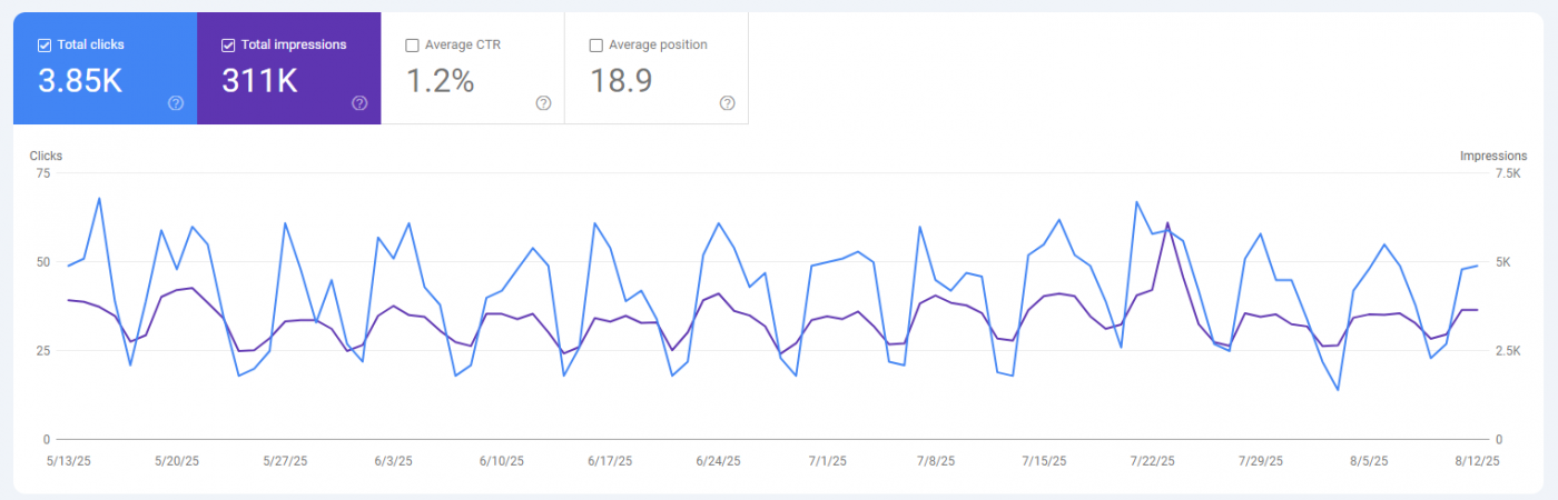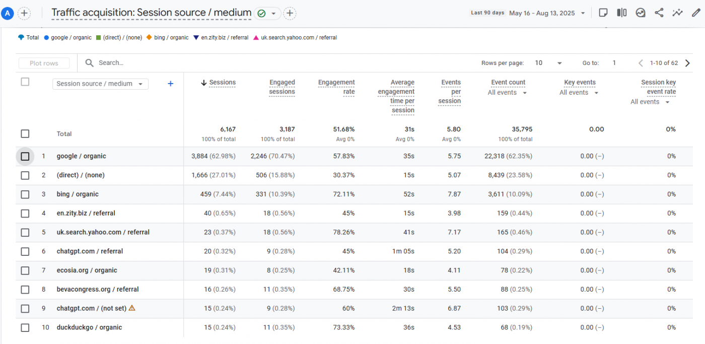 This is as clear as I’ve ever seen, Organic Search is the primary source of all traffic, with little traffic generated by social media or email marketing. There are no backlinks, no referring sites, you’re relying on people already knowing about the business, or a specific product, this massively impacts your ability to attract new online customers.